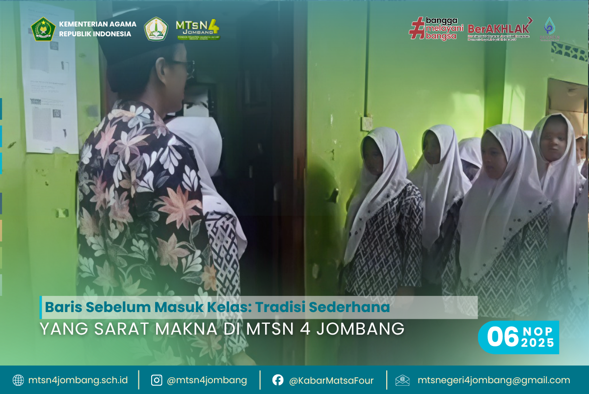 Tradisi pagi ini bukan sekadar rutinitas, tetapi cermin filosofi pendidikan MTsN 4 Jombang — madrasah yang menumbuhkan karakter lewat keteladanan, menciptakan disiplin lewat kebersamaan, dan membangun generasi berakhlak lewat kasih sayang.