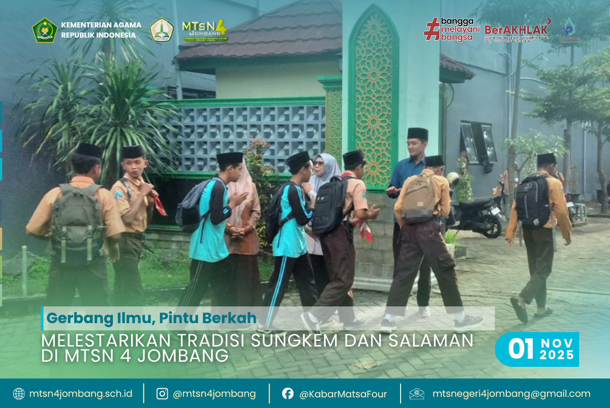 Tradisi sungkem dan salaman di MTsN 4 Jombang adalah warisan budaya dan agama yang patut dilestarikan. Ia adalah investasi karakter yang nilainya jauh lebih berharga daripada sekadar nilai akademik. Dalam genggaman tangan yang bersalaman dan dalam sungkem yang khidmat, tersimpan doa, harapan, dan komitmen untuk membangun peradaban yang lebih beradab.