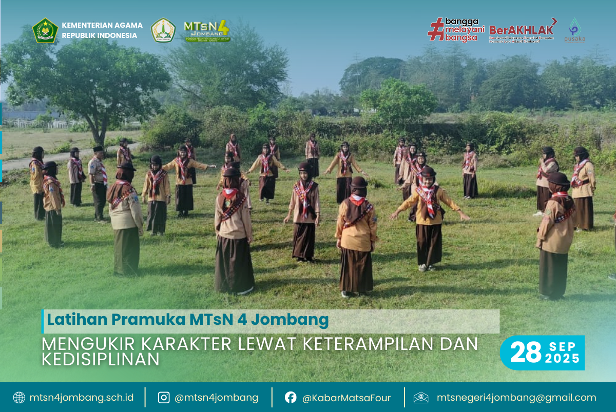Kegiatan latihan rutin ini jelas merupakan investasi berharga bagi masa depan. Melalui metode kepramukaan yang praktis dan menyenangkan, MTsN 4 Jombang secara konsisten berkontribusi dalam mencetak generasi muda yang tidak hanya terampil secara teknis, tetapi juga berkarakter kuat, disiplin, dan memiliki rasa kepedulian sosial yang tinggi. Hal ini sejalan dengan tujuan utama Gerakan Pramuka, yaitu membentuk manusia yang berkepribadian, berwatak, dan berbudi pekerti luhur sesuai dengan Pancasila, sehingga siap menjadi pemimpin dan warga negara yang bertanggung jawab di masa depan.