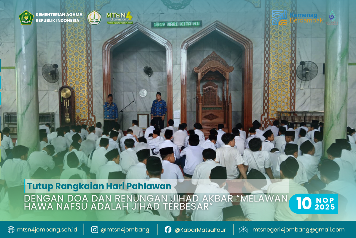Hari itu, MTsN 4 Jombang bukan hanya memperingati Hari Pahlawan, tetapi menghidupkan makna jihad sejati — perjuangan melawan diri sendiri demi menjadi manusia yang lebih baik.