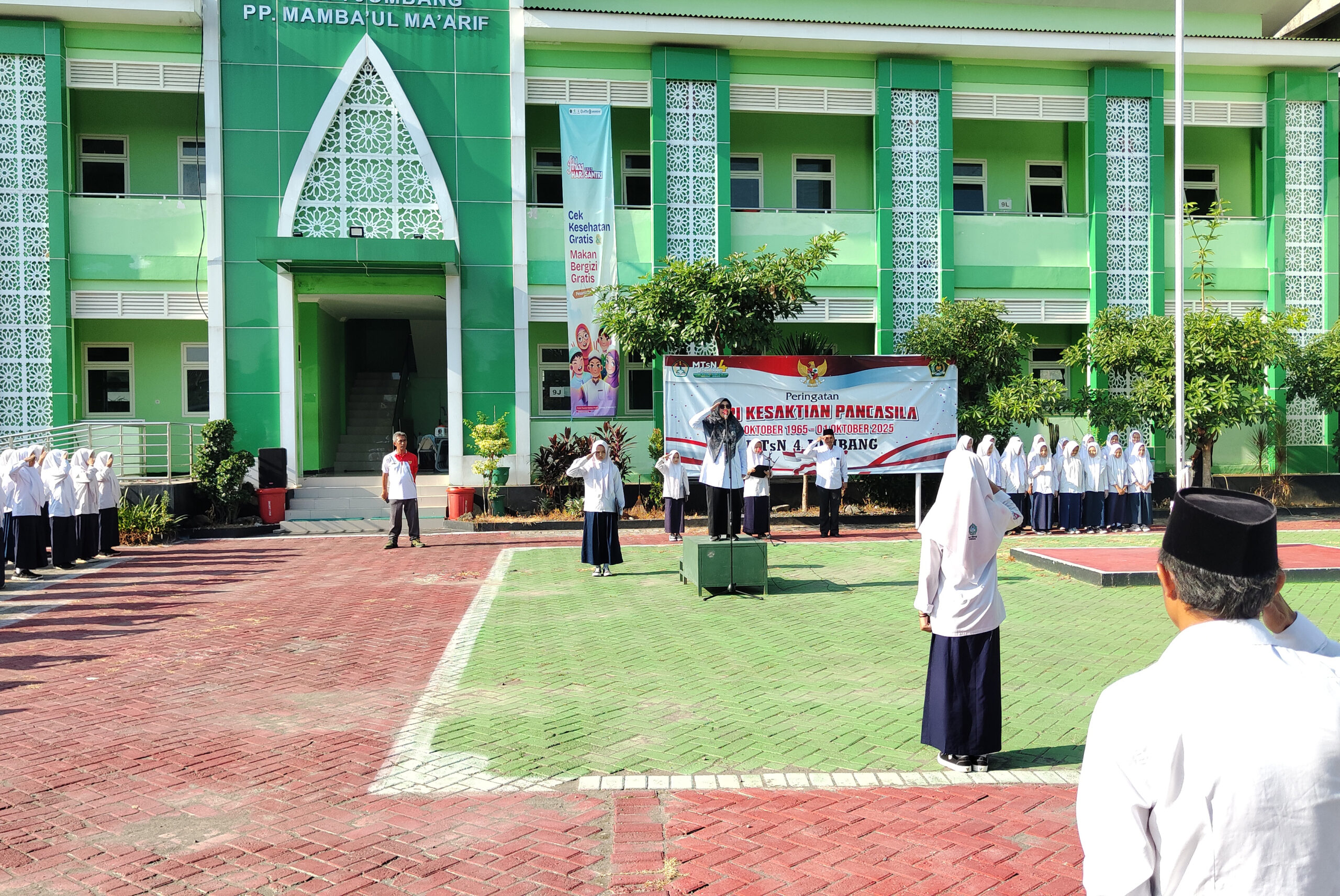 JOMBANG – Pagar madrasah bukanlah sekadar pembatas ruang. Ia adalah garis awal di mana proses panjang pembentukan karakter dimulai. Pada Senin, 13 Oktober 2025 yang cerah itu, di lapangan Kampus 3 MTsN 4 Denanyar Jombang, kami kembali menyaksikan sebuah mozaik indah dari pendidikan karakter yang berkesinambungan. Sebuah upacara bendera yang khidmat, yang jauh melampaui sekadar rutinitas, menjadi ruang hidup di mana nilai-nilai disiplin, tanggung jawab, dan akhlaqul karimah dirawat dan disemaikan.